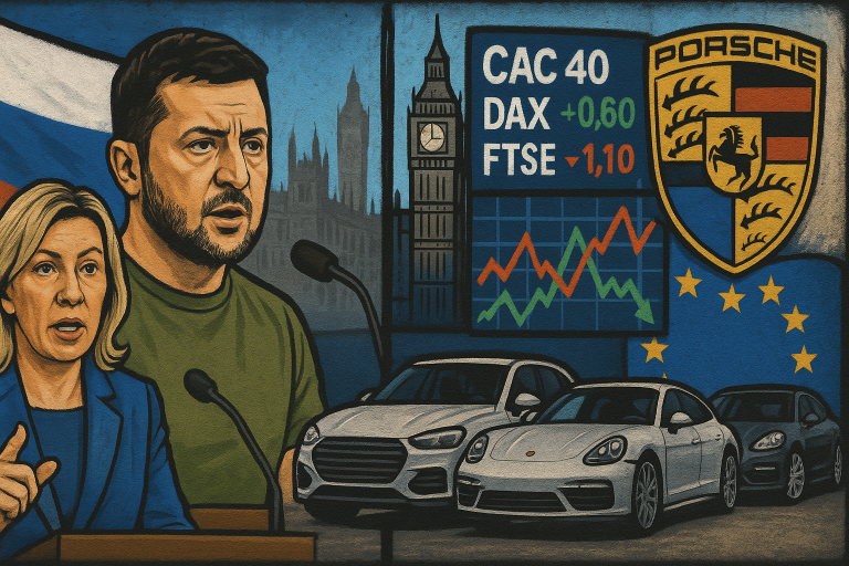 European and global markets navigated a mix of geopolitical tensions and corporate earnings on Friday, with Russia promising retaliatory measures against new EU sanctions, Ukrainian President Volodymyr Zelenskyy calling for enhanced strike capabilities, and major companies reporting earnings updates.